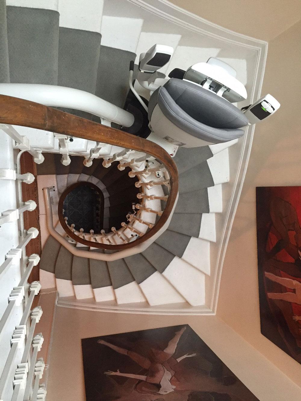 Nos monte escaliers courbes s’adaptent à tous types d’escaliers courbes y compris les colimaçons.