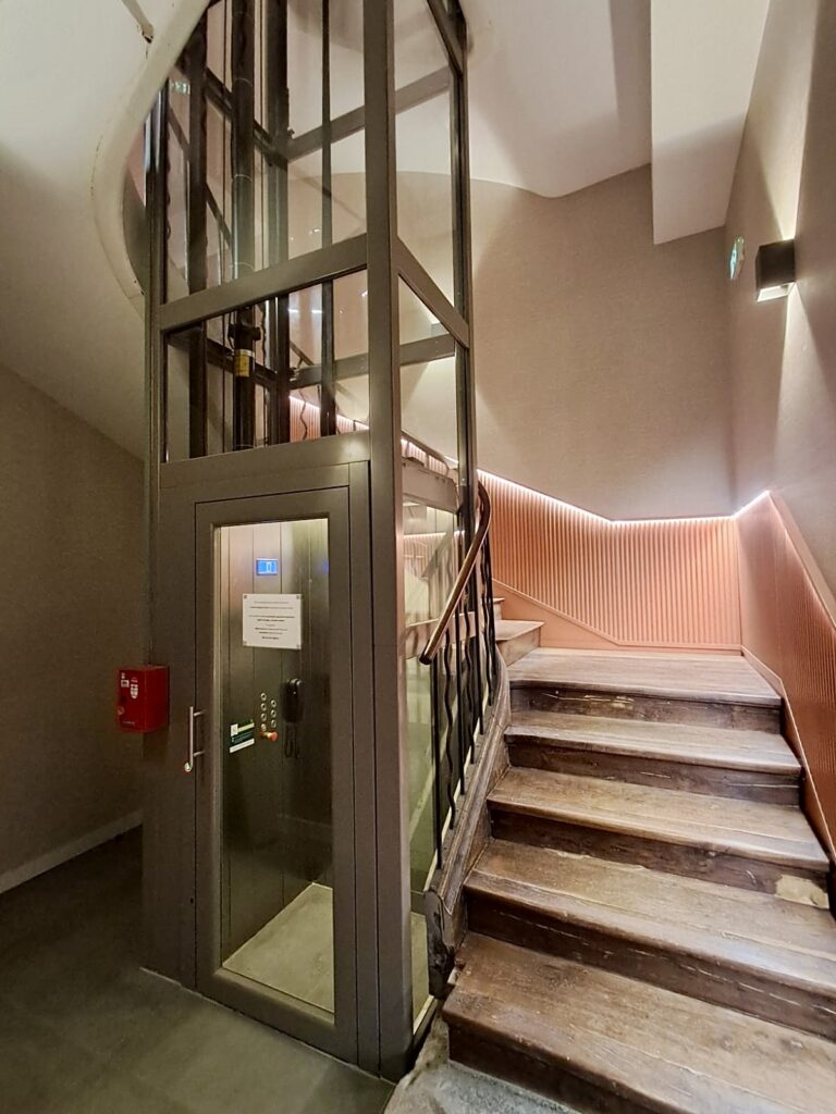 Cet élévateur PMR Elfo s’adapte aux dimensions particulières des escaliers du bâtiment. Le client avait besoin d’une solution stable, fiable et durable. Ainsi, nous avons travaillé chaque détail avec précision afin d’obtenir un résultat parfait. De plus, la cabine respecte toutes les contraintes du lieu et offre un confort optimal. Avec une capacité pouvant aller jusqu’à 400 kg, il facilite également le transport de charges lourdes lorsque cela est nécessaire.