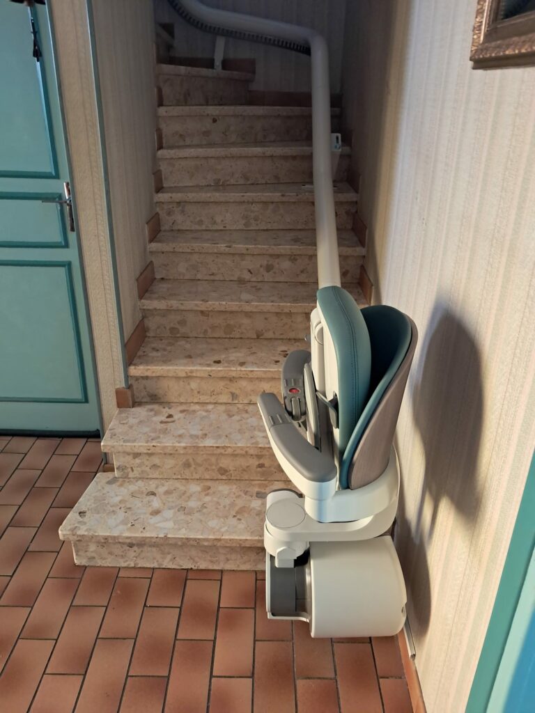 Récemment, nous avons installé un monte escalier Fidji chez un particulier à Ricaud, près de Castelnaudary, dans le département de Aude (11). Grâce à cet équipement moderne, le client peut désormais circuler librement entre les étages de sa maison.